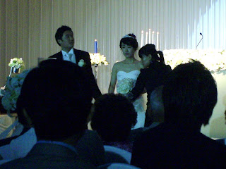 My co-worker, Winnie, the bride, walked down the aisle with her groom in modern wedding attire. Once they made their way to the front, a slideshow of pictures was played while a gentleman narrarated on a microphone. While these are common during a reception or rehearsal dinner in the West, I was surprised to see them during the actual wedding. There was no bridal party, but there were people on the stage tugging wrinkles out of Winnie’s dress or patting the forehead of the groom with a makeup sponge through the entirety of the wedding. This was quite unusual compared to the formality of the matrimonial ceremony that I have grown so accustomed to and a bit annoying if I might say so.