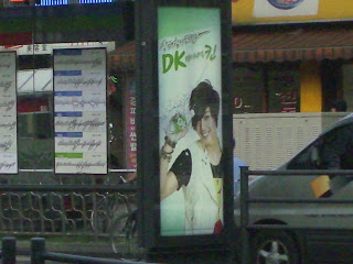 Kim Doo Young advertises for DK soda at a bus stop in Suyu.