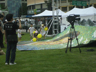 After each 45 minute class at Seoul English Village, teachers and students are given a 15 minute break to do what they please, though most recently, a hand washing session has been deemed a necessary action to take during this time. Depending on the situation, I may spend this time being fanned and fed candy by students or chatting with teenage girls about my favorite Korean drama. Most of the time, however, I head to the lobby to chat with my fellow teachers. About a month ago, however, I decided I would practice reading Hanguel and picked up a Korean newspaper. I came across an advertisement that contained the names of some of my favorite K-pop artists: Girl’s Generation, Super Junior, and 2PM to name a few. Imagine my excitement when a Korean co-worker translated that it was a concert and it was free.