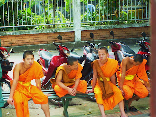 Really young monks on their lunch break at Wat Phra Sing.