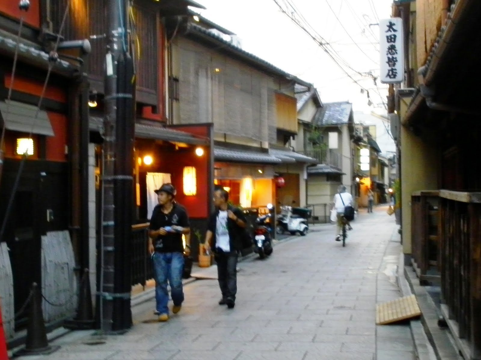 As I peered over the stream and into one of these restaurants, I suddenly noticed a very familiar image. I took a closer look and couldn’t help but recognize the white makeup and famous up-do. It was a geisha! Unfortunately, the zoom on my camera wasn’t good enough to get a decent shot, so I kept walking down the street. I paused to check out a small temple when I heard a window open and laughter echo out onto the street. I looked up to the second floor of the building and saw a business man with two geisha chuckling on either side of him. I was in awe as I stood so close to the real thing, taking in the fact that I was in the premier geisha district of Japan.