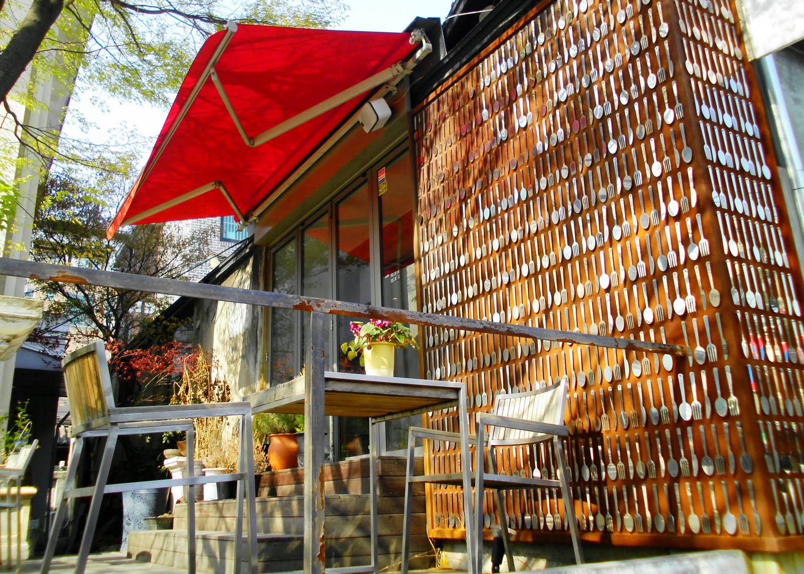 Cutlery hangs on the wall of this restaurant’s patio in Gahoe-dong. While it doesn’t necessarily give off the old-world vibe, it adds charm to the neighborhood.