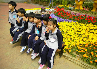 There were thousands of kindergartners there and I was pretty nervous about losing one of ours. Only half joking before the trip, I had told my co-teacher that we needed to order leashes for our youngest class. Sure enough, there actually were plenty of kids from other schools that held onto ropes as their teachers led them through the park. I think my school will invest in a few of those for next time. While I kept a close eye on my class, I kept the other on the flowers and cherry blossoms surrounding us. It was the most color I had seen since autumn and I was nothing but smiles. Flowers of all colors blanketed the grounds, while the cherry blossoms hung over sidewalks, providing for photo-op after photo-op. The trip was enjoyed by all and I felt cured of my winter blues.