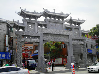 After walking out the station’s only exit, I immediately spotted the large, characteristically Chinese gateway into Korea’s only Chinatown. In the 1940s, many Chinese immigrated to Incheon during a boom in trade of chinaware, medicinal herbs, and silk. While the area became much smaller after the war, it still draws large crowds during the weekends. This neighborhood is what originally drew me to Incheon so I was eager to explore it. I was first greeted by merchants waving me into their shops; their wares included everything from traditional Chinese dresses to Chinese liquor to small marble figurines of happy Budais. Most of it was cheap souvenirsy paraphernalia, but the stores were fun to browse.