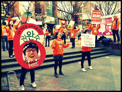 I asked a Korean friend if mudslinging TV ads were allowed in Korea like they were in the States. She said that in general they were not, unless they were very inconspicuous. So, how do election hopefuls get ahead in the race? Let’s just say that campaigning techniques used in Korea are a bit more animated than those used in the West.