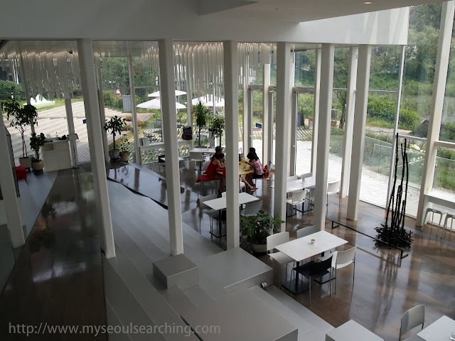 It wouldn’t be a visit to Heyri without making a stop in one of the many galleries, so I popped into Gallery White Block (admission: 2,000 won) to have a look around. The interior of the building was essentially, like its name suggests, a block with white walls, high ceilings, and a lot of light. Gallery White Block features an airy cafe on the first floor, as most galleries in the village do, with a view of the Heyri pond. I won’t try to pretend that I know anything about art. I don’t. But, I do know that the paintings and photographs displayed in the exhibits were beautiful and worth checking out.