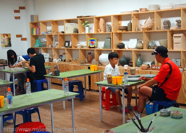 In addition to the galleries, there is a kitschy appeal that blankets Heyri Village. It can be found in the quirky Toy Museum, the unexpected Elvis museum, and the colorful facades of buildings that dot the community, but no where is it more apparent than the three story The Step (aka I Like Dalki) building. Dalki (Korean for “strawberry”) is a famous red-headed animation character, and is the main attraction of the complex. Her her face is plastered on the walls and featured in the products sold by the stores of the shopping area. In addition to a Dalki playground and Dalki bakery, there is also a number of businesses that offer various do-it-yourself art experiences, like pottery painting and jewelry making. Adults and children alike were packed into the small workshops, thoroughly enjoying themselves.