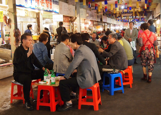 Soon enough, it was quitting time, and as vendors closed up their shops and turned off the lights, I got a sense that I was right in the middle of a Korea that most visitors never see. The market streets I toured represented the real Korea, tenacious and glazed in gasoline, flashy and loud and pungent, where common people work relentlessly day in and day out so that their children might grow up to live a more prosperous life.