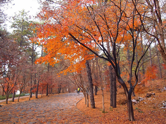 Across the city, we started on a trek at Busosanseong, a mud fortress located on top of Buso Mountain. Busosan, which was once deemed the guardian mountain of the city is home to many historical landmarks. Walking along the mountain paths gave us an usual but pretty view of fresh snow and autumn foliage, not yet ready to fall.  The trek was a reminder that no matter where I travel in Korea, spectacular nature walks abound.