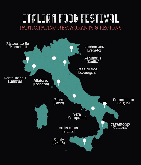 From May 1 to 31, each of the 12 participating restaurants will serve up an exclusive course menu including typical and authentic dishes, each from a specific region of Italy, prepared and selected by their own chefs.
