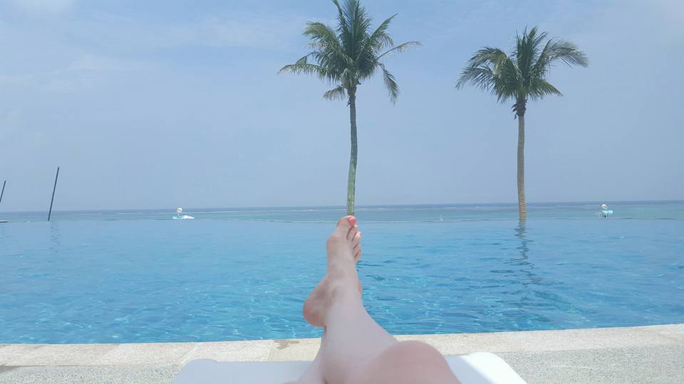 I met up with a Marine friend of mine who had just been transferred to Okinawa from Seoul, and we parked it for an entire day under our rented umbrella (¥2500) on the hotel’s private beach (¥500 admission). We occasionally took a dip in the ocean (which is protected from sea snakes and jellyfish by a net) or the palm-tree lined infinity pool (¥1000).