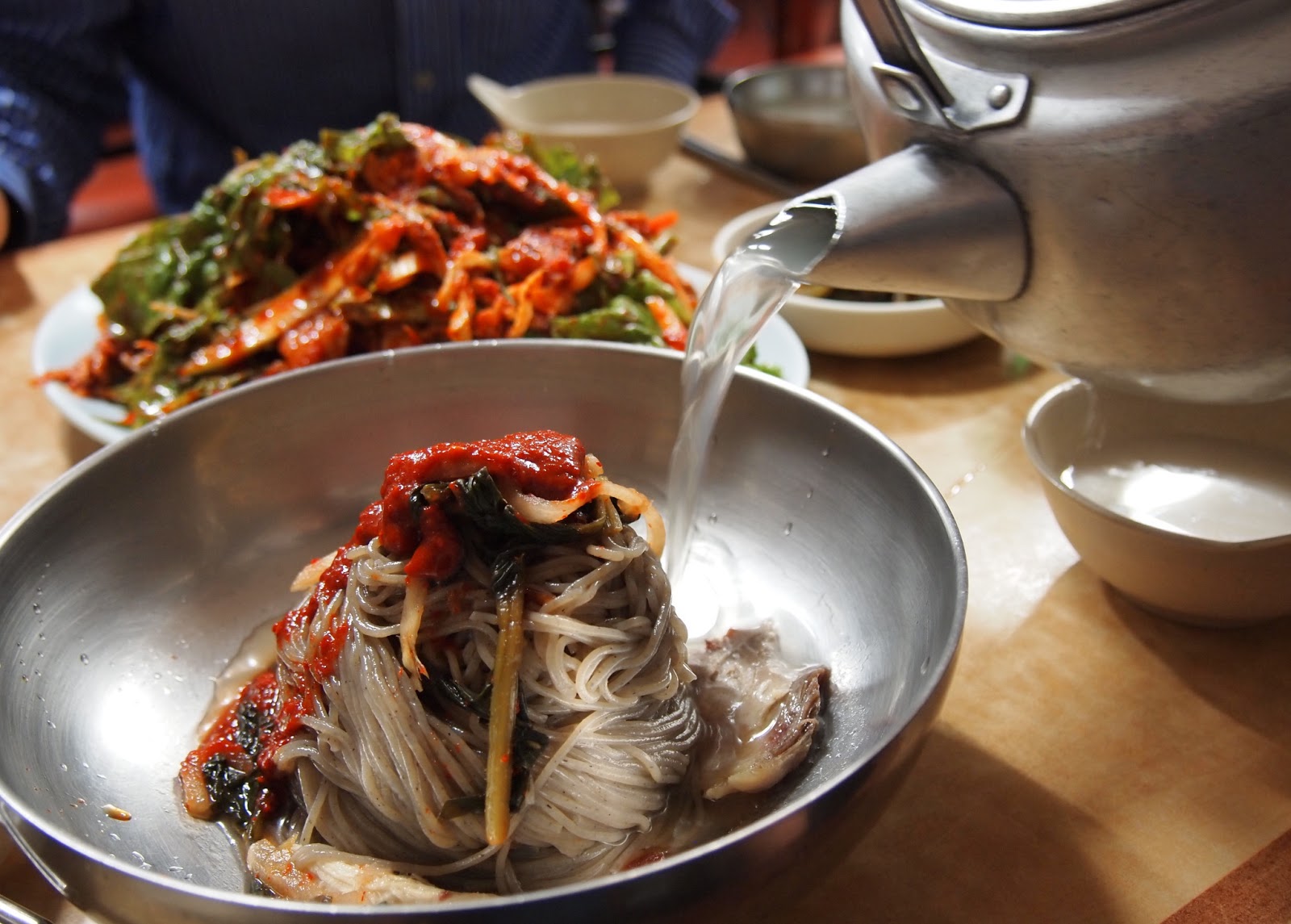 The old restaurant is generally frequented by mostly elderly diners – many of whom have frequented the restaurant since its opening – who add to the atmosphere with their boisterous banter. For them, Chuncheon Makguksu is a taste of their younger days, flavors that undoubtedly bring back memories of a different Korea, a Korea without iPhones or Starbucks. A Korea that the neighborhood of Euljiro still embodies today.